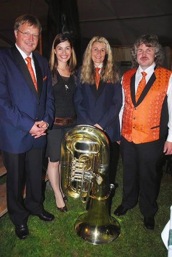 Dirigent Alfred Fischer, Moderatorin Michèle Beglinger, Präsidentin Astrid Schild und OK-