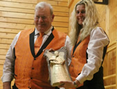 Für 50 Jahre aktives Musizieren wurde Fritz Amacher zum kantonalen Ehrenveteranen ernannt. Dafür erhielt er von Vereinspräsidentin Astrid Schild eine geschnitzte und vergoldete Trophäe seiner selbst. (bk)