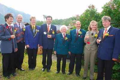 | Uniformen-Vielfalt am Musiktag: Käthi Schilt (Iseltwald), Robert Michel (Unterseen), Markus Imboden (Wilderswil), Christian Heiniger (Interlaken), Beat Feuz (Mürren) und Michael Galliker (Leissigen). |
